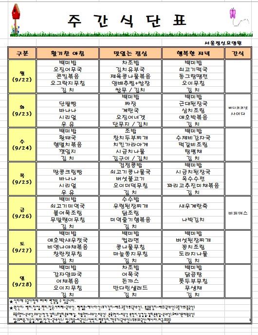 ÁÖ°£½Ä´Ü (9/22~9/28) ÀÔ´Ï´Ù.