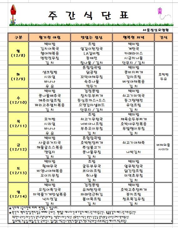 ÁÖ°£½Ä´Ü (12/8~12/14) ÀÔ´Ï´Ù.