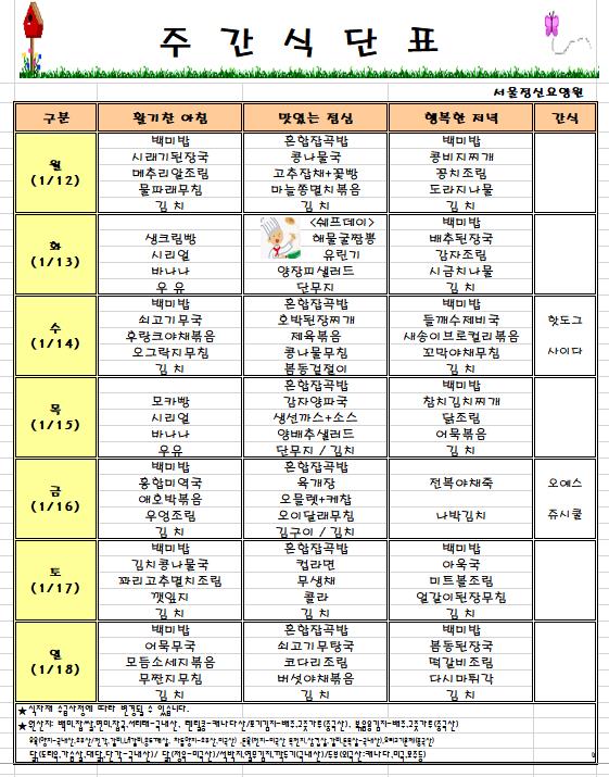 ÁÖ°£½Ä´Ü (1/12~1/18) ÀÔ´Ï´Ù.