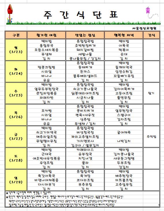 ÁÖ°£ ½Ä´Ü (3/23~3/29) ÀÔ´Ï´Ù.