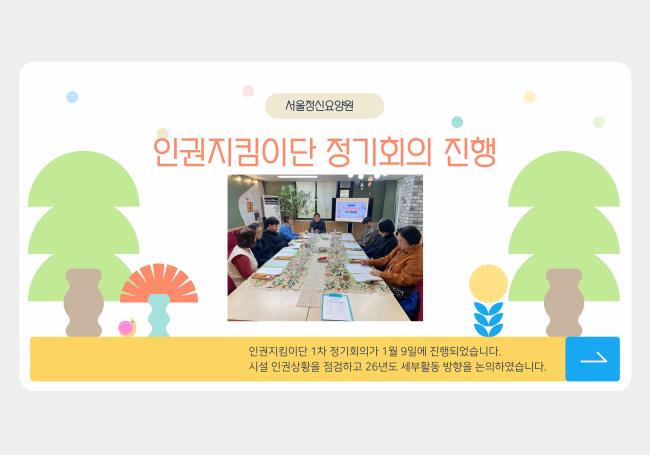 5. ³»¿ë: 2026³â 1Â÷ Á¤±âȸÀÇ¿¡¼´Â ½Ã¼³ ³» ÀαǻóȲ Á¡°Ë ¹× 2026³â ¼¼ºÎȰµ¿À» ³íÀÇÇÏ¿´½À´Ï´Ù. ¸Å ȸÀǶ§¸¶´Ù ¸Õ±æ ¿ÍÁÖ½Ã°í ¼¼½ÉÇÏ°Ô »ìÆìÁֽô À§¿ø´Ôµé²² °¨»çµå¸³´Ï´Ù!