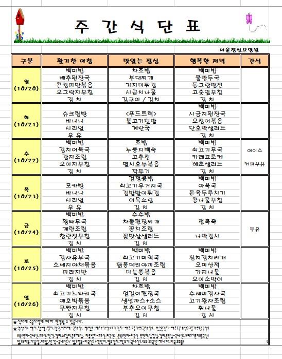 ÁÖ°£ ½Ä´Ü (10/20~10/26) ÀÔ´Ï´Ù.
