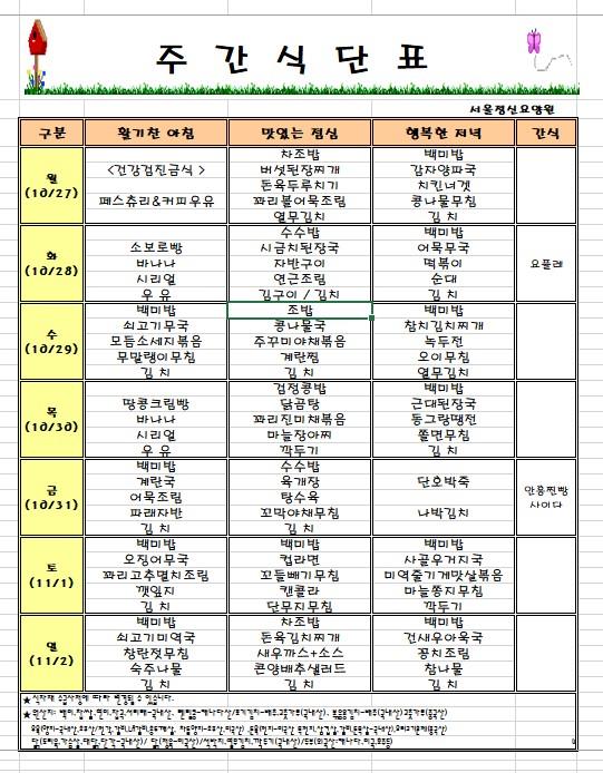 ÁÖ°£ ½Ä´Ü (10/27~11/2) ÀÔ´Ï´Ù.