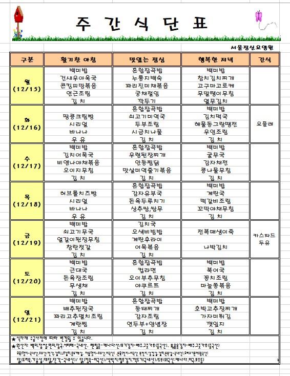 ÁÖ°£ ½Ä´Ü (12/15~12/21) ÀÔ´Ï´Ù.